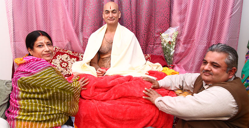 his wife Smt. Kavita Singh taking blessings from His Holiness